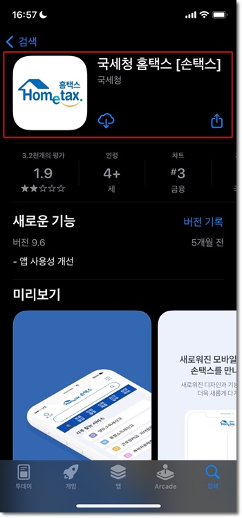 국세청 공식 어플리케이션인 손택스 앱을 다운 받은 후 실행합니다.