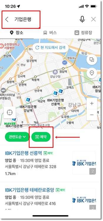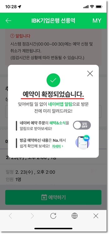네이버 예약이용하여 기업은행 영업점 방문예약