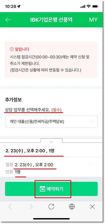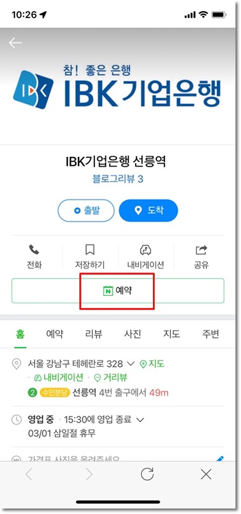 네이버 예약이용하여 기업은행 영업점 방문예약