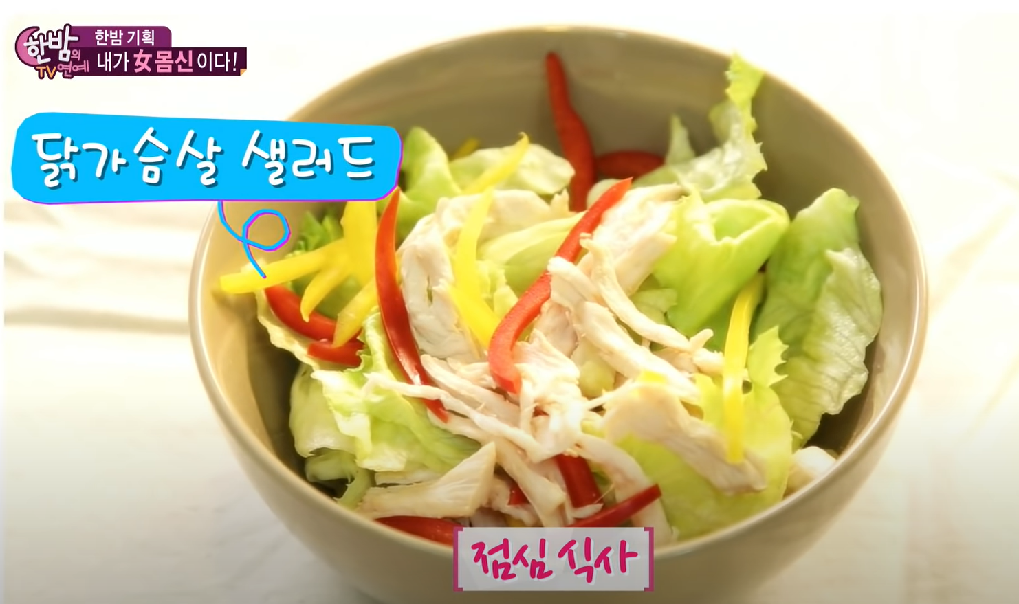 점심에는 닭가슴살 샐러드로 배를 채운다고 하네요.
