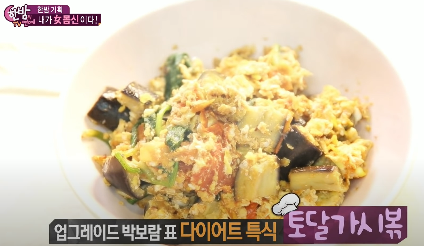 토마토, 달걀, 가지, 시금치를 넣고 볶아서 먹었다고 하네요.