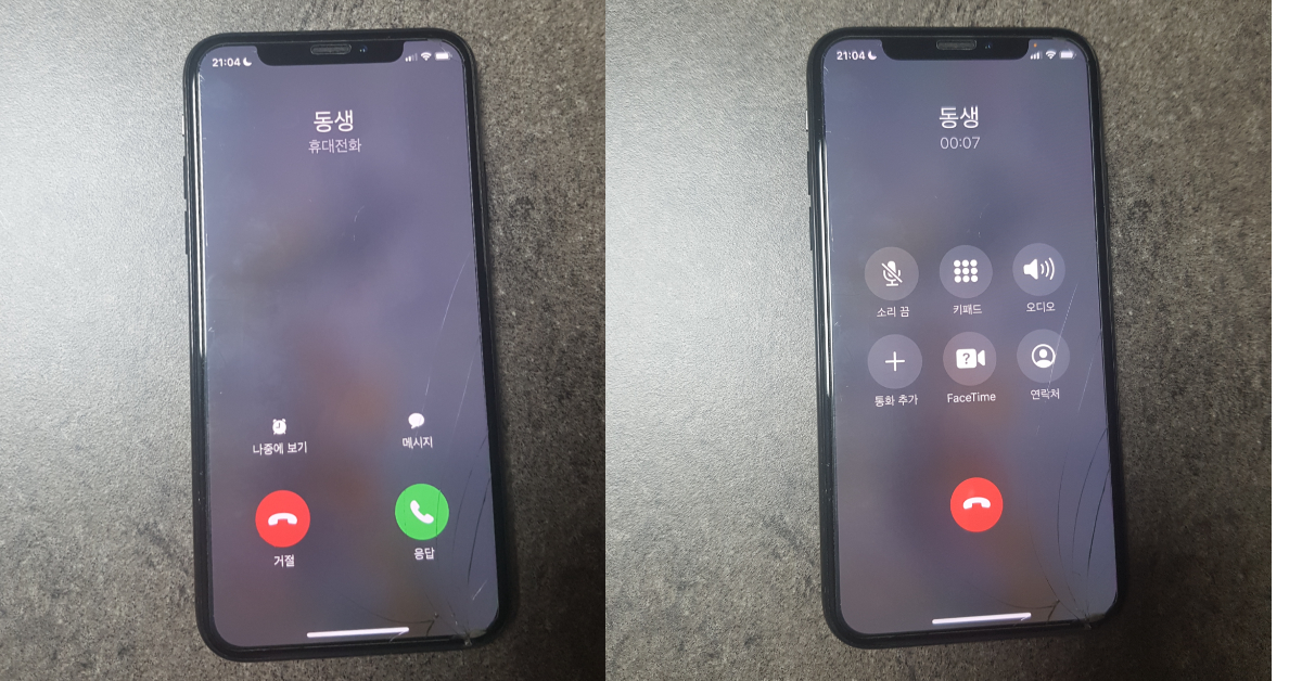 특히 아이폰 사용자라면 더욱 조심해야합니다. 왜냐하면 아이폰은 아래의 사진과 같이 이미 저장된 사람의 번호라면 통화중에는 저장한 사람의 이름만 뜨고 전화번호가 안뜨기 때문에 보이스피싱 전화인 것을 빨리 알아차릴 수 없습니다.