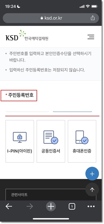 주민등록번호 입력 후 아이핀, 공동인증서, 휴대폰 중 선택하여 인증합니다.