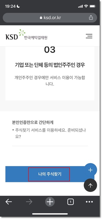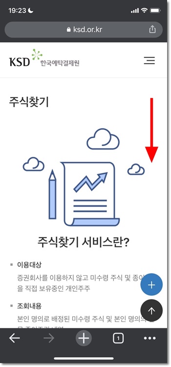 주식찾기 메뉴에서 기본정보를 확인 후 하단으로 내린 후 나의 주식찾기로 들어갑니다.