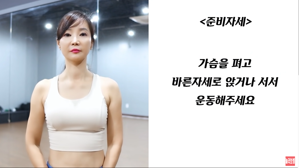 최대한 목, 어깨, 등의 긴장을 풀되, 가슴은 펴고 준비자세를 취해줍니다.