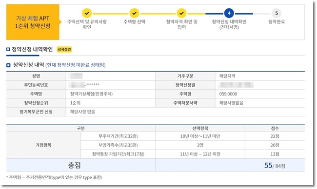 실제 청약에서는 전자서명 후 연락받을 연락처를 입력하면 최종 신청이 완료됩니다.
