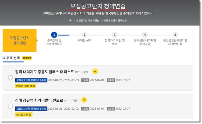 이와 유사한 모집공고단지 청약연습은 자신이 신청하려는 실제 주택 단지의 입주자 모집공고가 발표난 경우 청약하려는 단지의 일반공급에 한하여 청약접수 전날까지 실제처럼 연습해 볼 수 있습니다. 사전에 청약제한사실을 확인할 수 있고 실제청약과 동일한 환경에서 청약신청 연습을 해볼 수 있습니다.