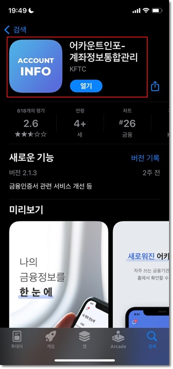 - 스마트폰 어플리케이션 ‘어카운트인포’ 다운로드