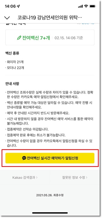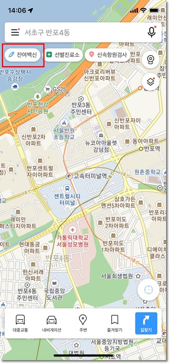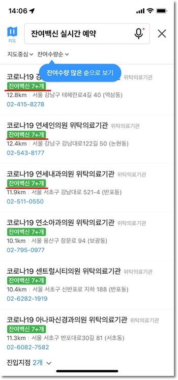 근처 접종가능한 곳의 잔여 백신을 확인합니다.
