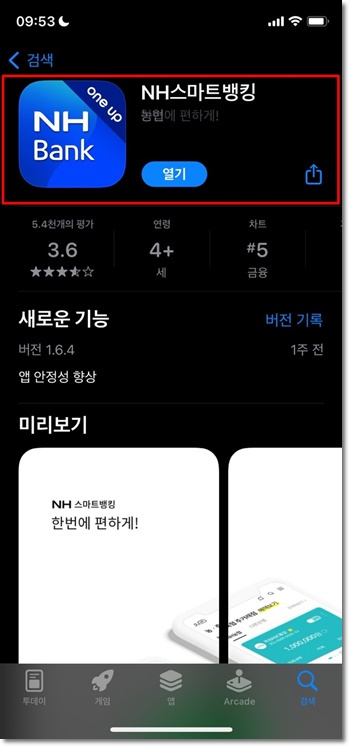 NH농협은행 공식 앱을 다운 받아 설치합니다.