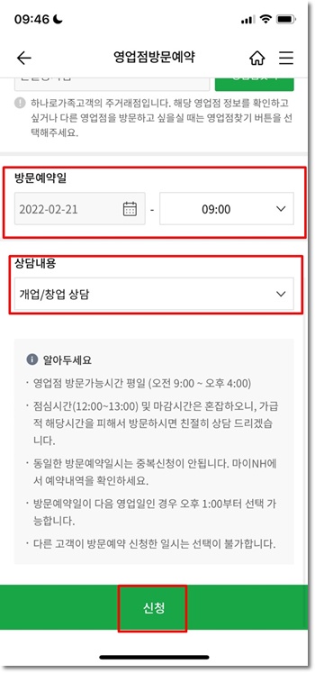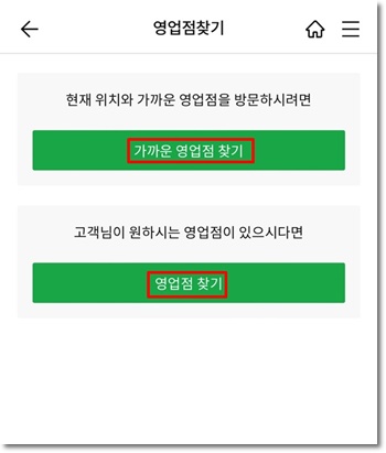 지도상에서 예약 가능한 가까운 영업점이나 검색으로 영업점을 찾아 선택합니다.