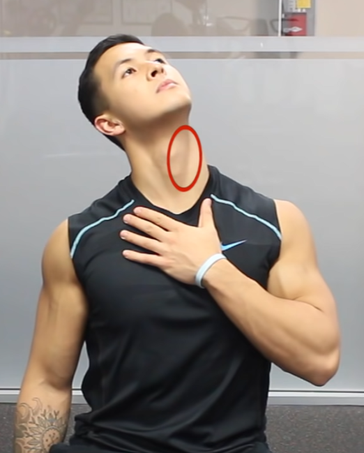 4. 목 앞부분이 당기는 것을 느끼면서 30~60초간 유지 후 반대편을 반복합니다.