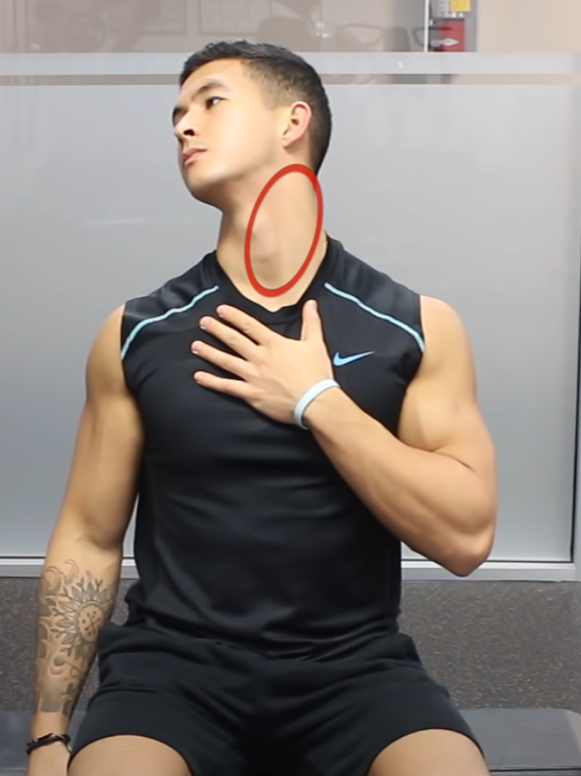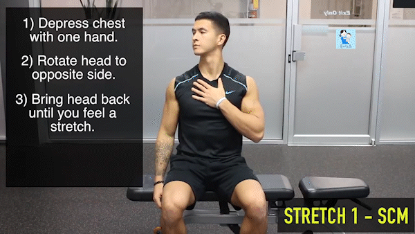4. 목 앞부분이 당기는 것을 느끼면서 30~60초간 유지 후 반대편을 반복합니다.